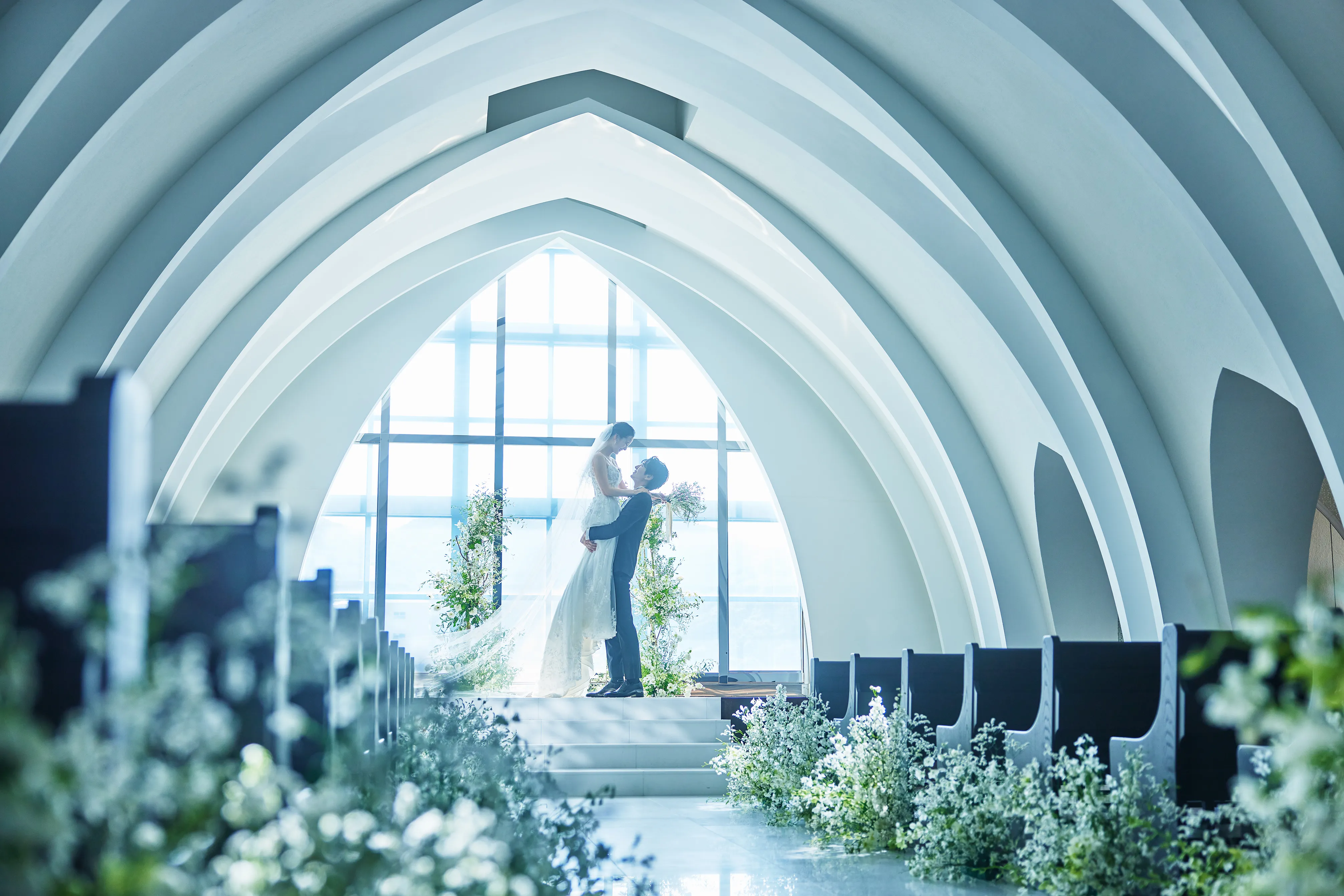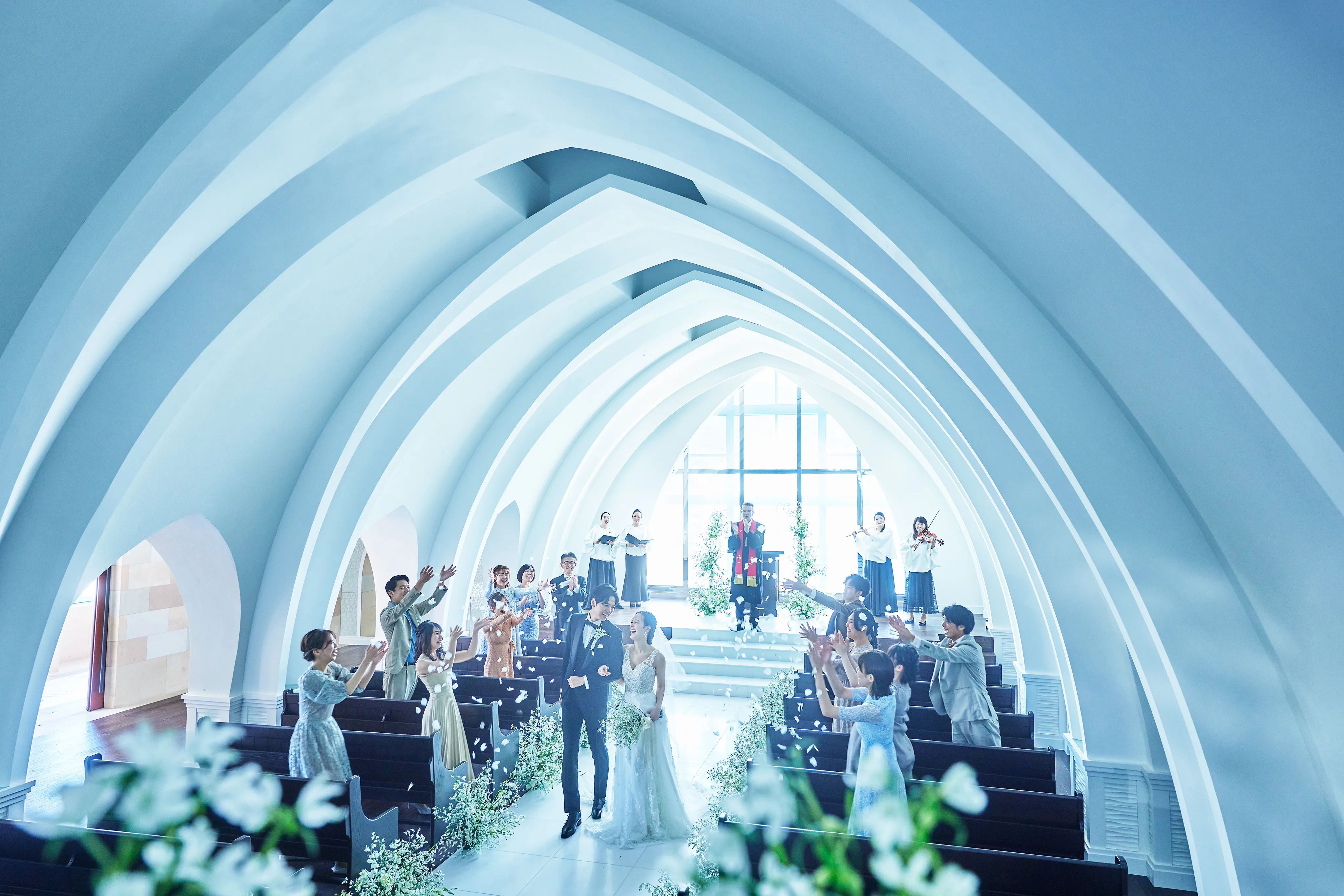 優しい自然光が差し込む純白のデザイナーズチャペル